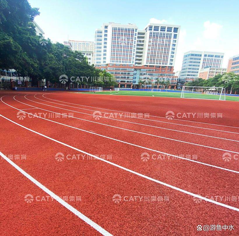 在塑胶跑道方面,项目采用了川奥混合型塑胶跑道方案,使得跑道更加耐磨、防滑,同时也具备更好的弹性和舒适度。让学生么们可以更好地保护关节和减少受伤风险,提升运动效果。